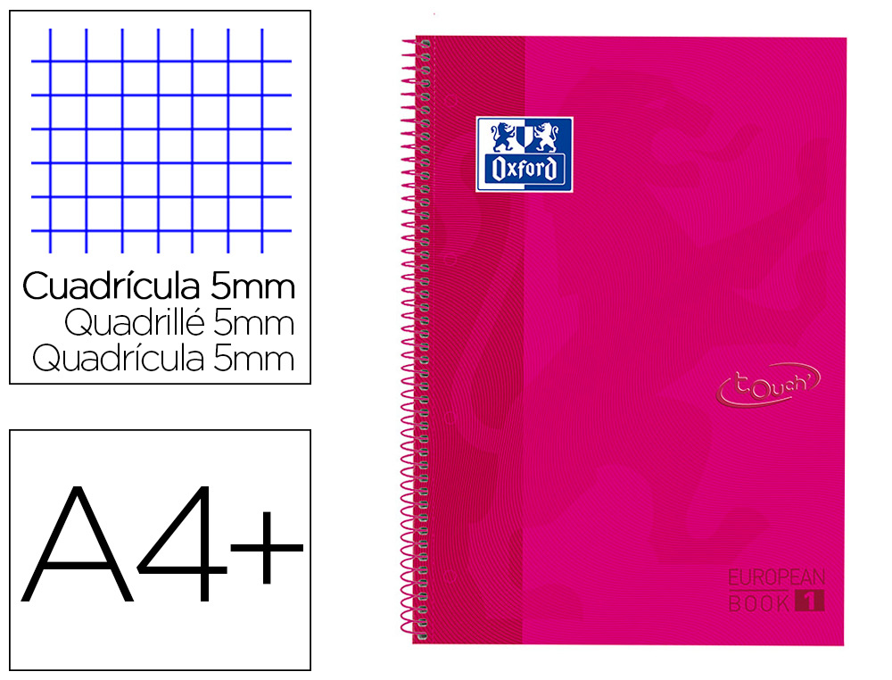 Cuaderno espiral oxford ebook 1 school tapa extradura din a4+ 80h cuadro 5 mm pack de 3 unidades colores surtidos