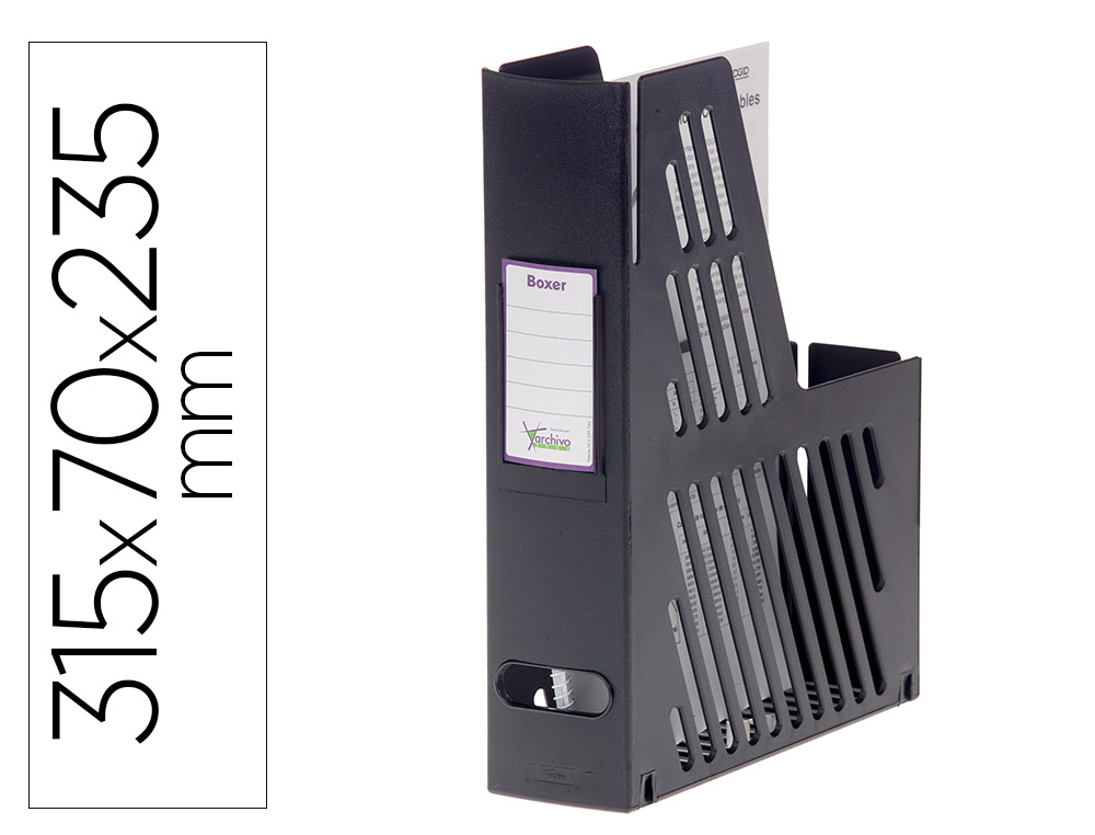 Este cajetín de archivo es una solución eficiente y sostenible para la organización de documentos en formato A4 y folio. Fabricado en poliestireno 100% reciclado y reciclable, combina resistencia y compromiso medioambiental. Su diseño compacto y estable facilita mantener revistas, archivos y otros materiales impresos siempre accesibles y bien ordenados.