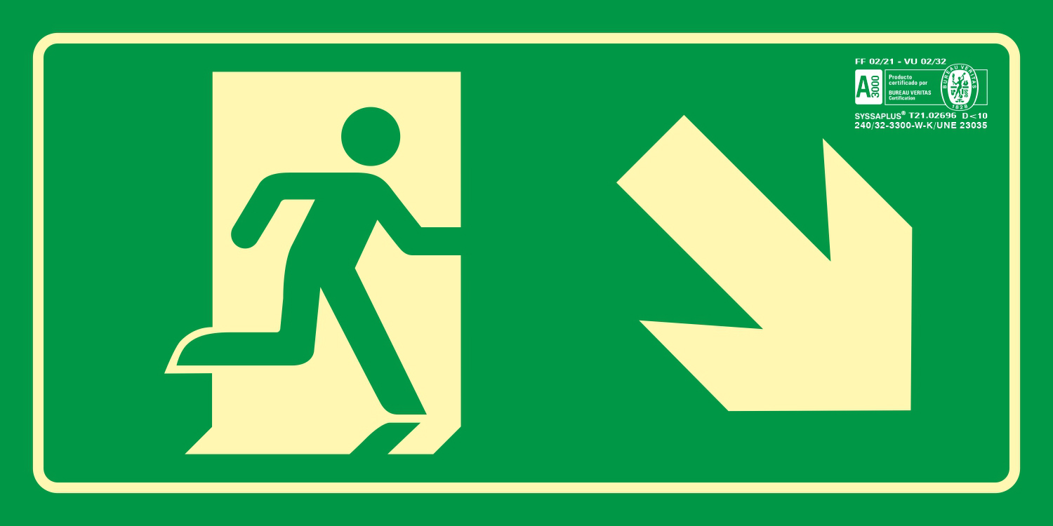 - Dimensiones: 320 mm de ancho por 160 mm de alto, tamaño óptimo para señalización en rutas de evacuación.